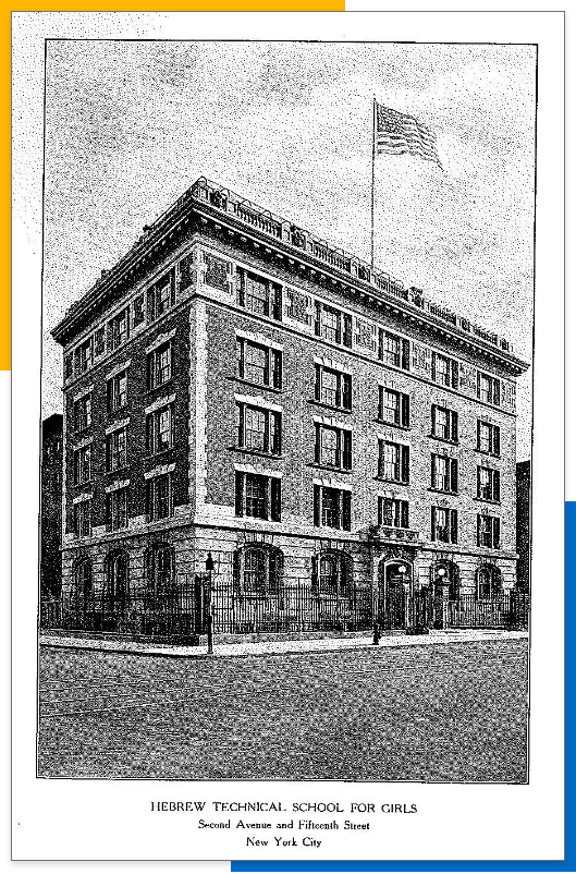 Hebrew Tech breaks ground on a five-story building at 2nd Avenue and 15th Street. Former First Lady Frances Cleveland lays the cornerstone. As office work becomes a respectable employment option for women, the curriculum expands to include secretarial skills.